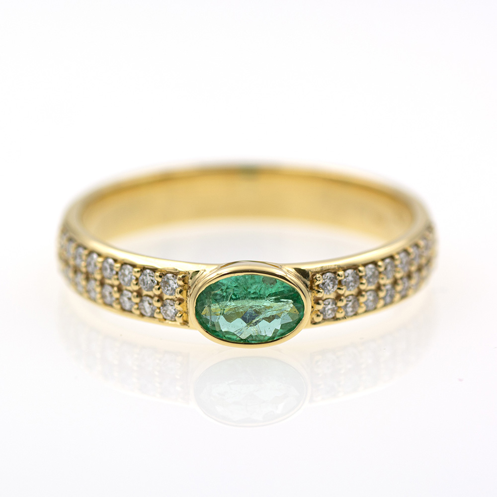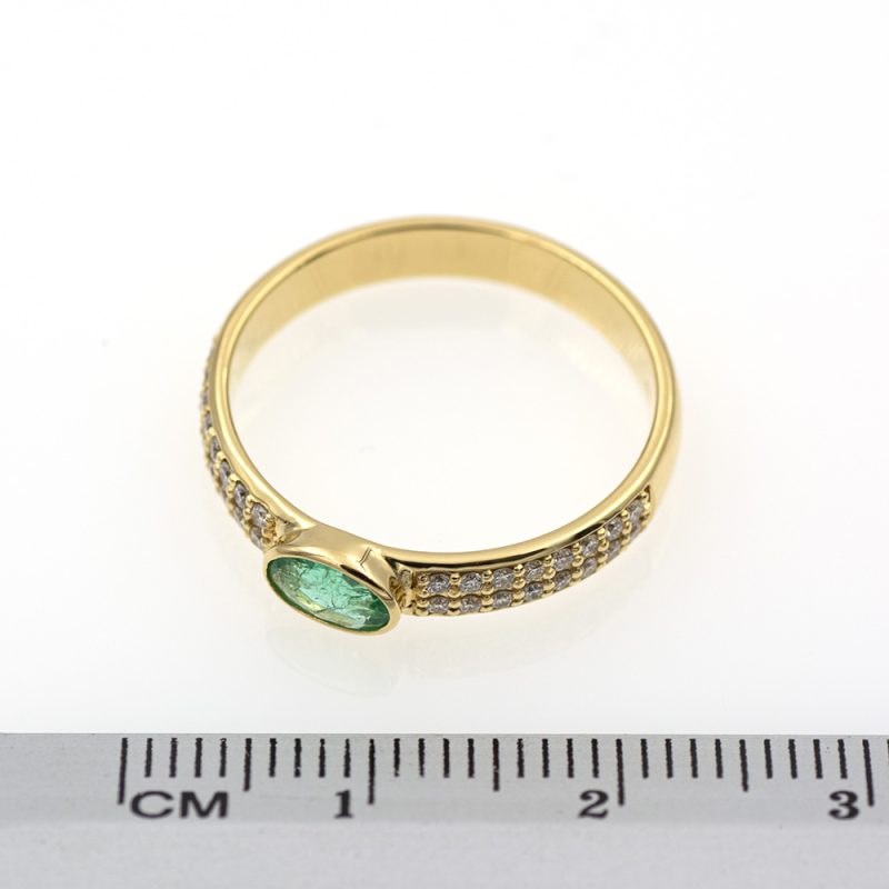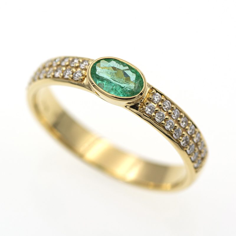 Anillo de oro amarillo 18k/750 con esmeralda oval de 0,30 ct. y 0,22 ct. de diamantes.