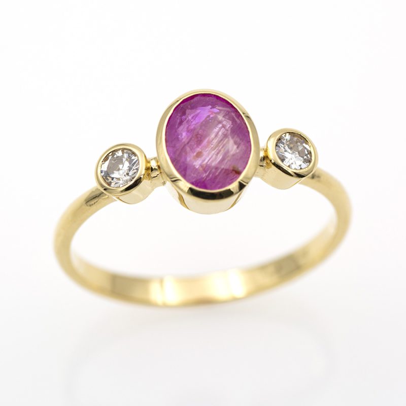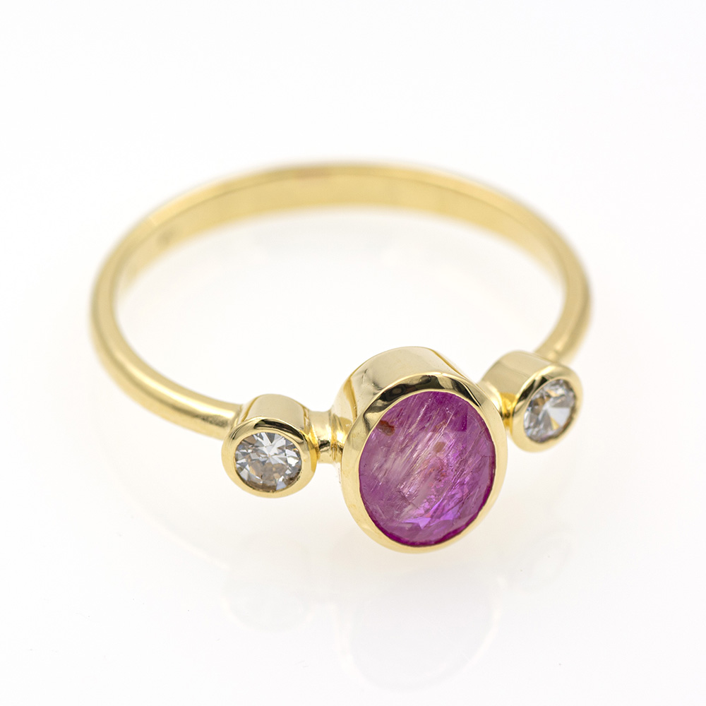 Anillo de oro amarillo con rubí y diamantes.