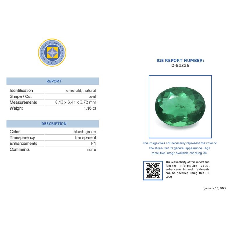 El anillo será enviado en un estuche de madera acompañado de un informe de nuestra joyería y el informe IGE de la esmeralda.